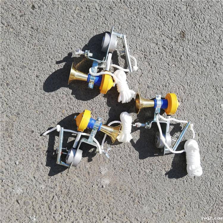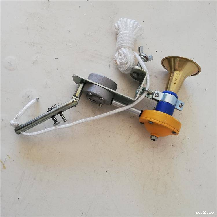 铁路风笛紧急制动阀,其主体为由阀体、两阀芯、导向板和驱于顺序开启阀门的下口连接一个三通体,三通体两侧通动转柄构成的顺序开启阀门,在阀体一侧连接胶管,胶管的另一端接喇叭。设计要点在口分别接有固定板及进气口连接件。风笛紧急制动阀具有双进气口结构可方便地安装于列车的中部车厢,既可保障气路的畅通,又可实现鸣笛和制动,使位于列车中部的调度员也能使用。