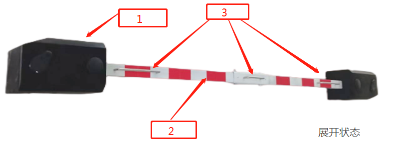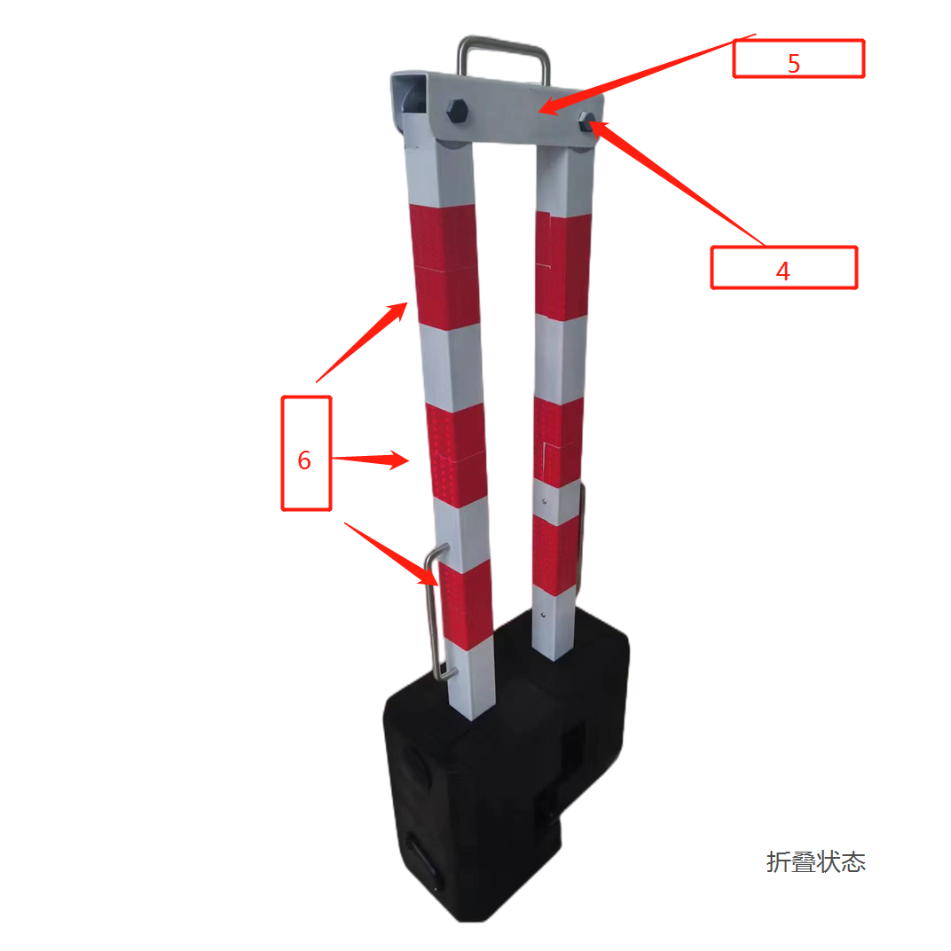 折叠式连接杆:4#方钢管,外体红白油漆标识;